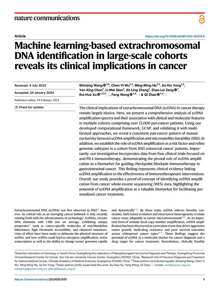 Our new ecDNA allocation algorithm GCAP is now live! linc. Congratulations to Shixiang Wang! GCAP enables determination of ecDNA status from whole-exome sequencing (WES) datasets. Using GCAP, we further reveal that ecDNA may serve as a promising biomarker for ICI treatment in gastrointestinal (GI) cancers.
